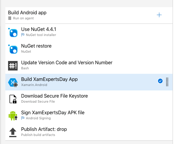 For now just disable the current Xamarin.Android task that builds the Android app with Xamarin. It is important not to delete it because soon this feature will be available directly in this task. But let’s take a look at the alternative for now.